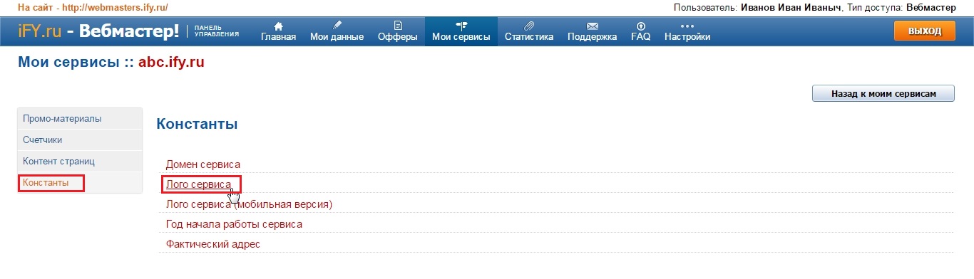 Константы - это информация которая будет отображаться в определенном месте на сайте сервиса. У каждой константы есть свое название, по нему и определяется размещенине той или иной информации.