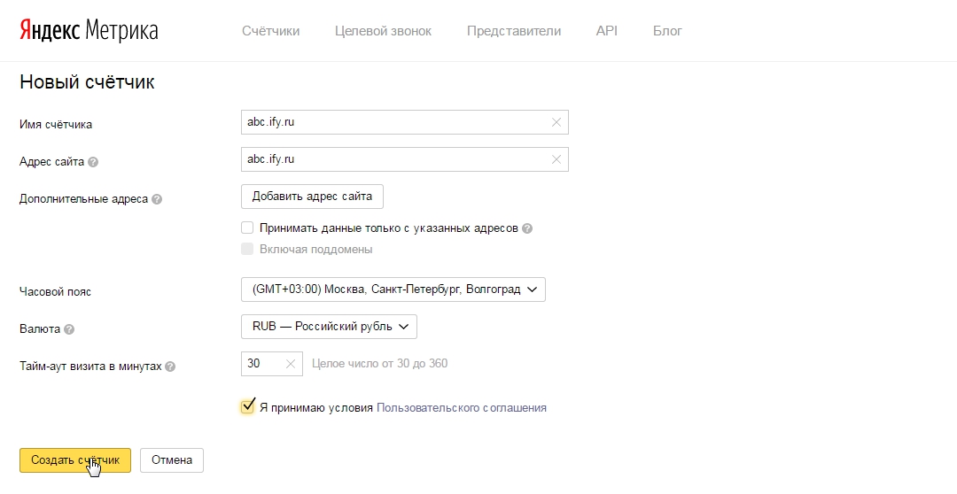 "Создать счетчик".